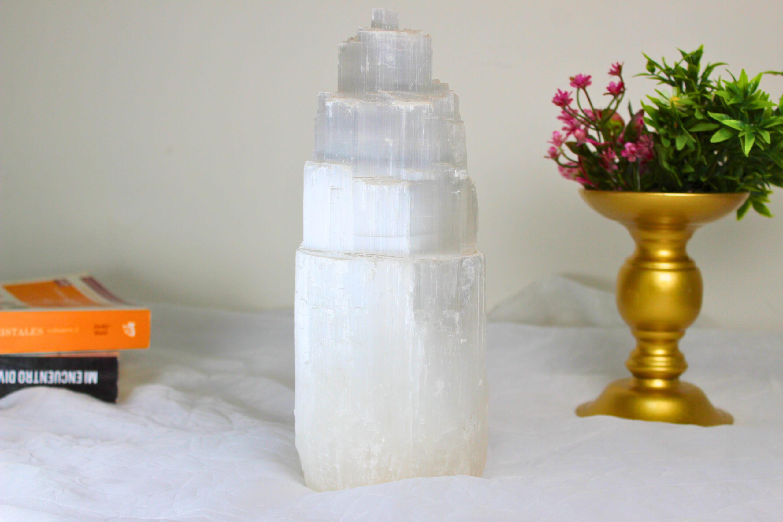 La selenita es reconocida como una de las piedras más poderosas para la limpieza energética y la protección espiritual. Su suave luz blanca crea un ambiente de paz, armonía y relajación, ideal para meditar, descansar o simplemente disfrutar de un espacio lleno de buena vibra.