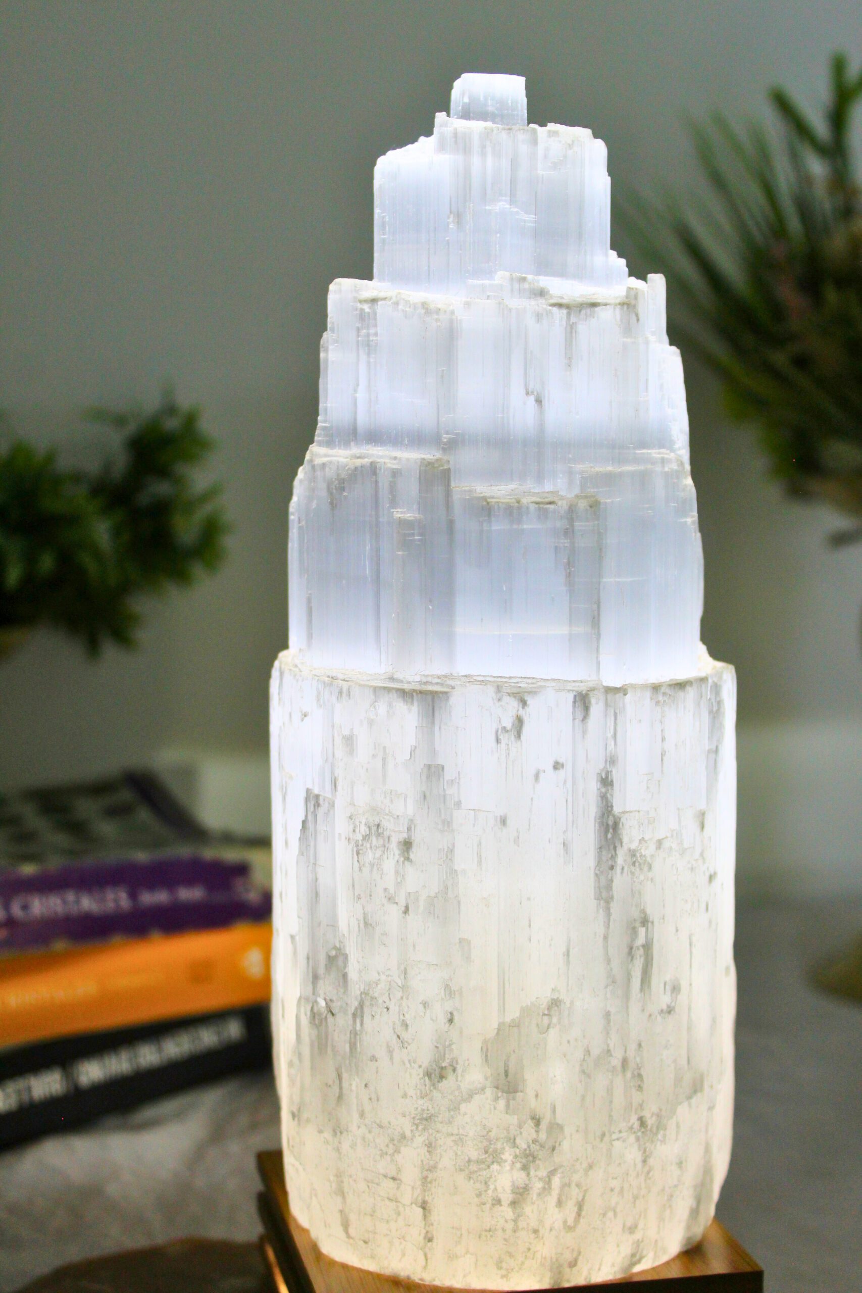 Ilumina y purifica tus espacios con la Lámpara de Selenita, también conocida como Castillo de Selenita, una pieza natural y única que no solo decora, sino que eleva la energía de tu hogar.